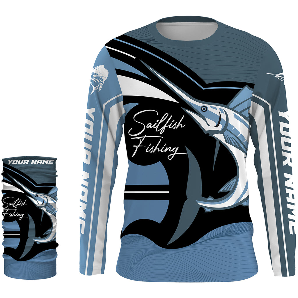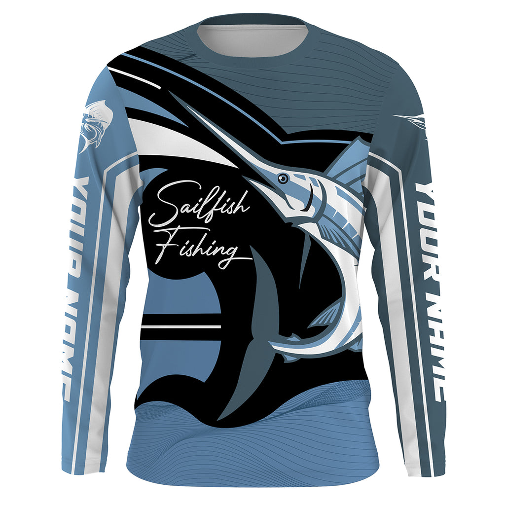 Sailfish Fishing Custom Long Sleeve performance Fishing Shirts, Sailfish Fishing jerseys | blue -HVFS011