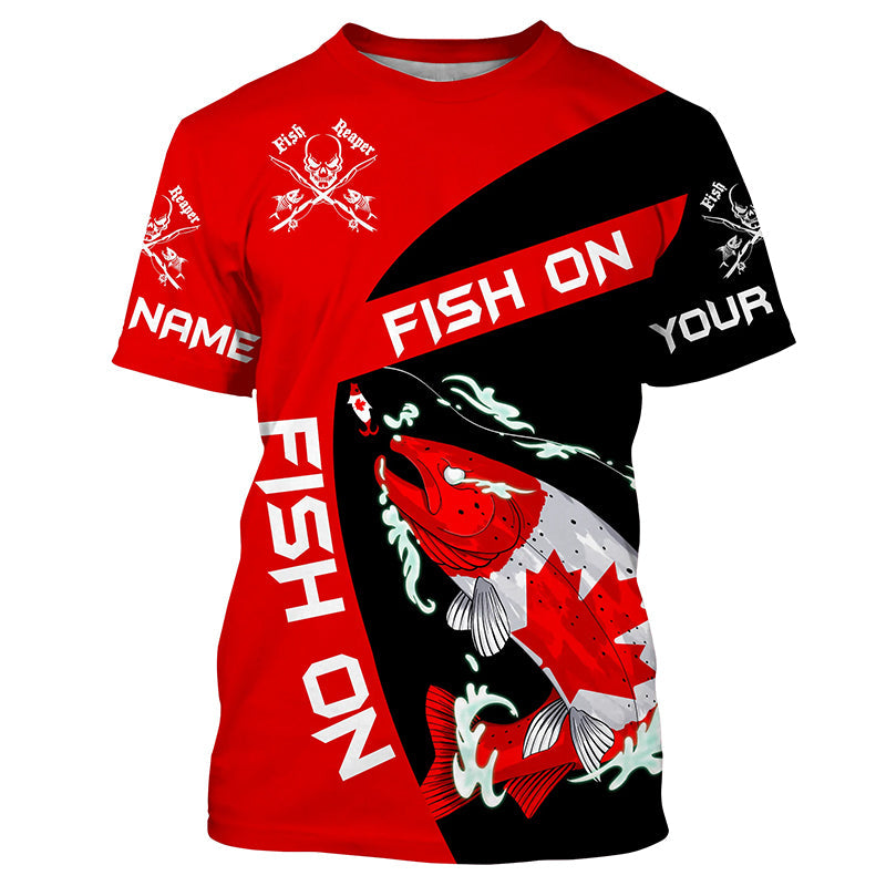 Salmon fishing Canadian flag Custom sun protection Long sleeve Fishing Shirt, Salmon Fishing Gift NQS4596