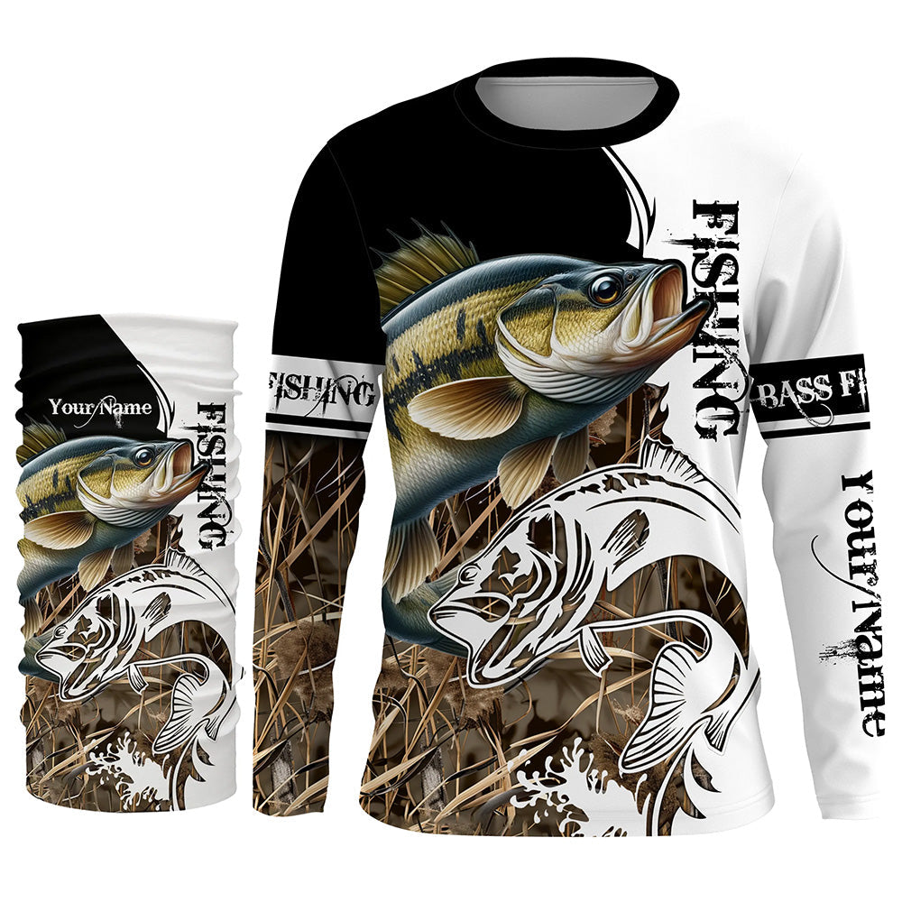 Smallmouth Bass Fishing Camo UV protection long sleeves shirt Custom Smallmouth Bass Fishing Jerseys NQS682
