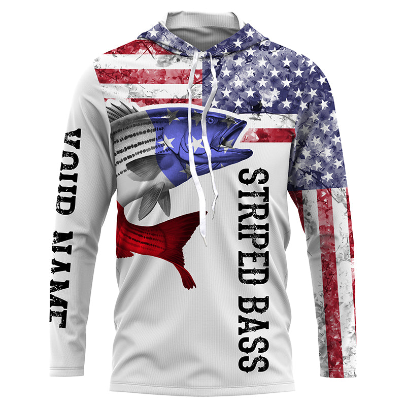 Striped Bass Fishing American Flag Custom Long sleeve Performance Fishing Shirts TTS0196