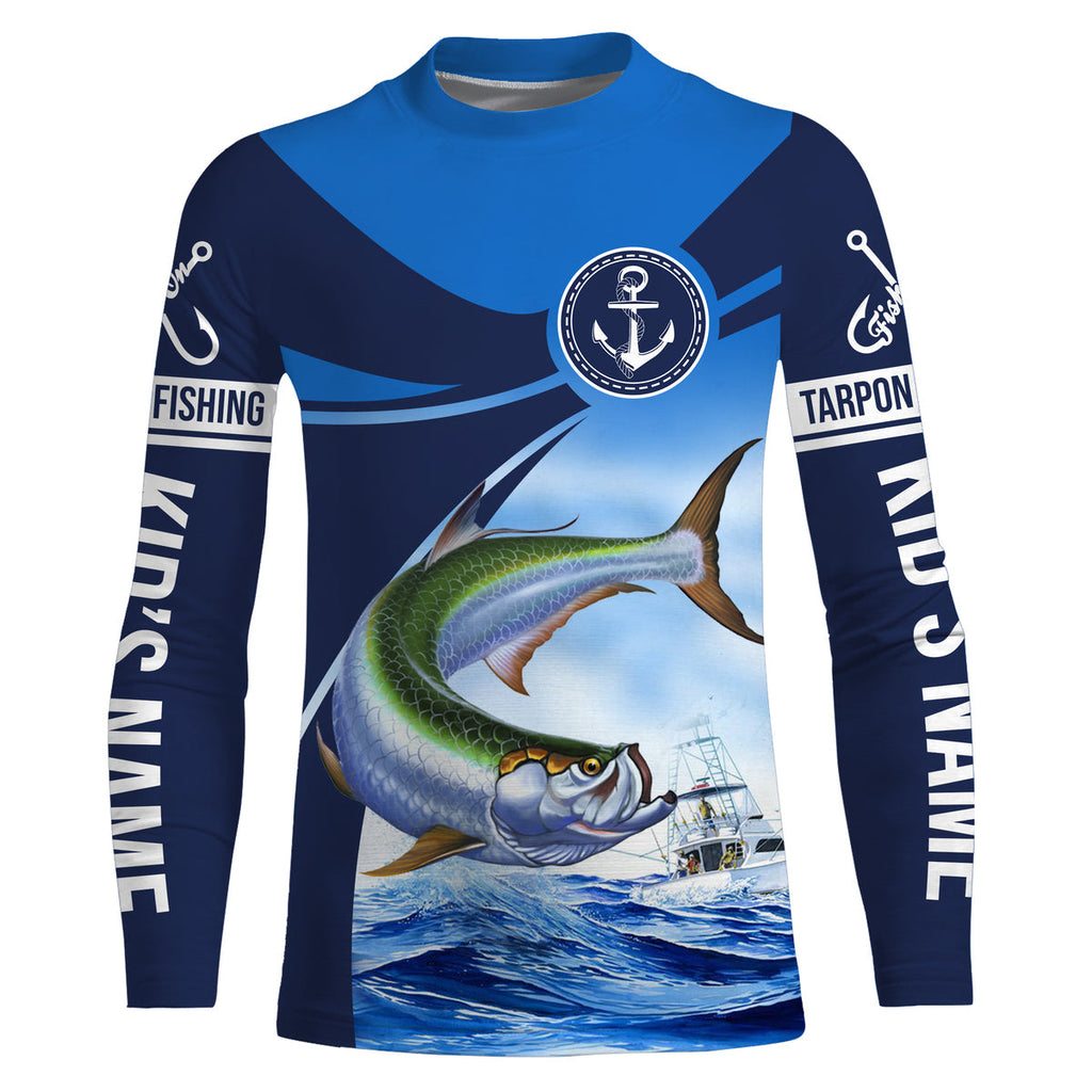 Tarpon fishing blue sea underwater ocean Custom Name performance long sleeve fishing shirt NQS3782