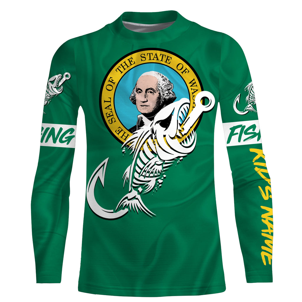 WA Washington Fishing Flag Fish hook skull Custom sun protection fishing shirts for men, women, kid NQS3409