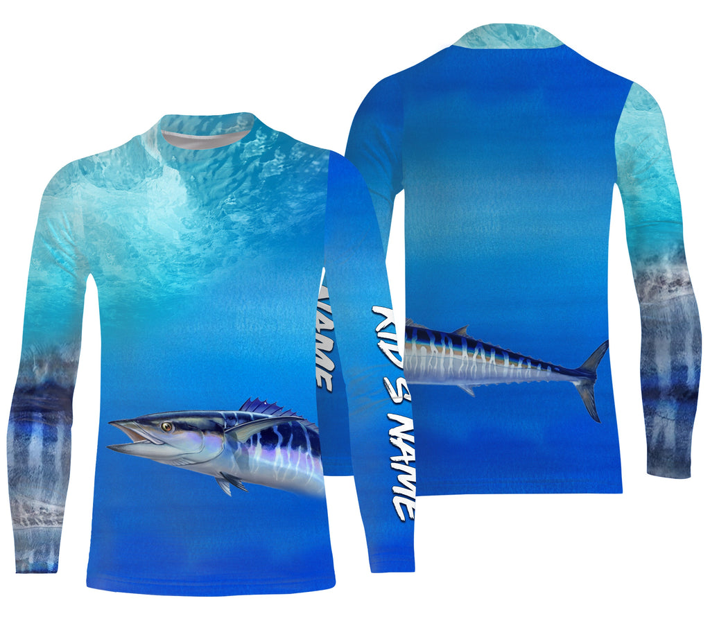 Wahoo fishing scales blue ocean sea wave camo Custom Name sun protection UPF 30+ fishing jersey NQS3413