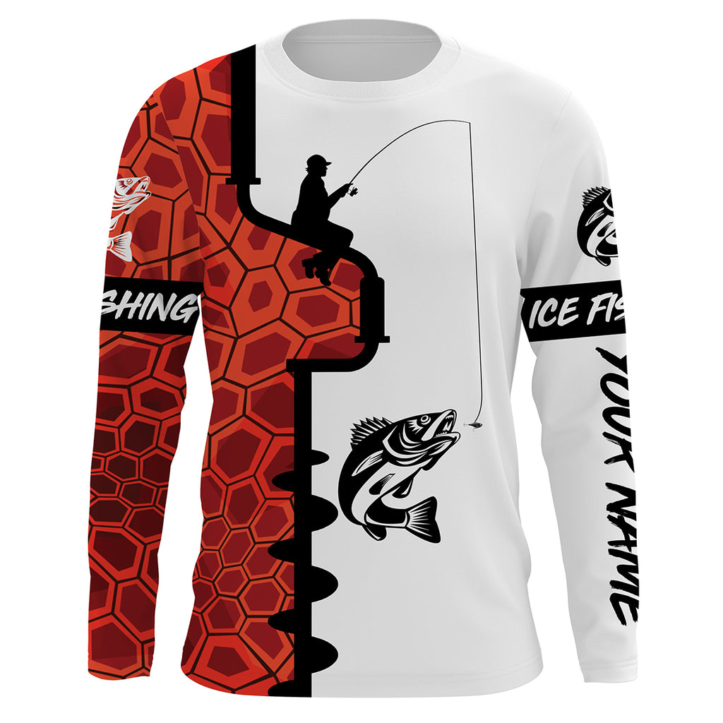 Walleye Ice Fishing Custom UV Long Sleeve performance Fishing Shirts | orange camo - IPHW2351