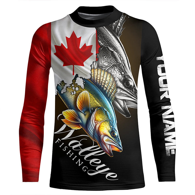 Walleye UV protection long sleeves fishing shirt Canada flag patriot Customize walleye fisherman gifts NQS7640