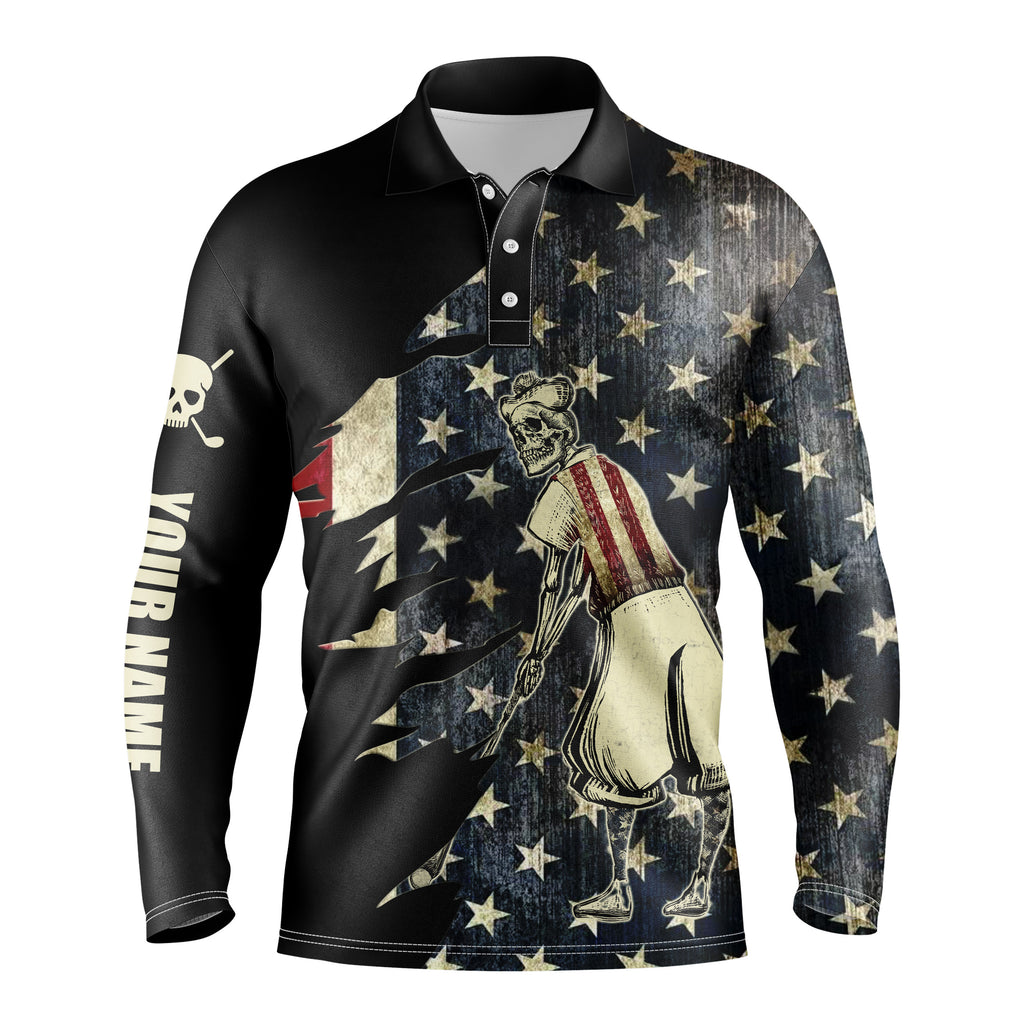 American flag golf skull patriotic Men golf polo upf shirts custom team black golf polo NQS3681