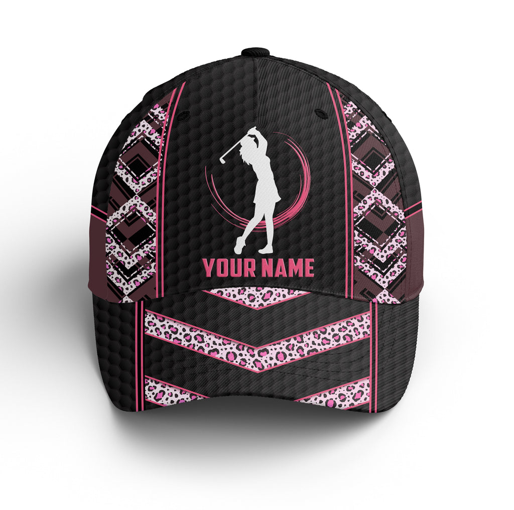 Black & pink leopard pattern golf hat custom name baseball golf cap hat, golfer gifts NQS3476