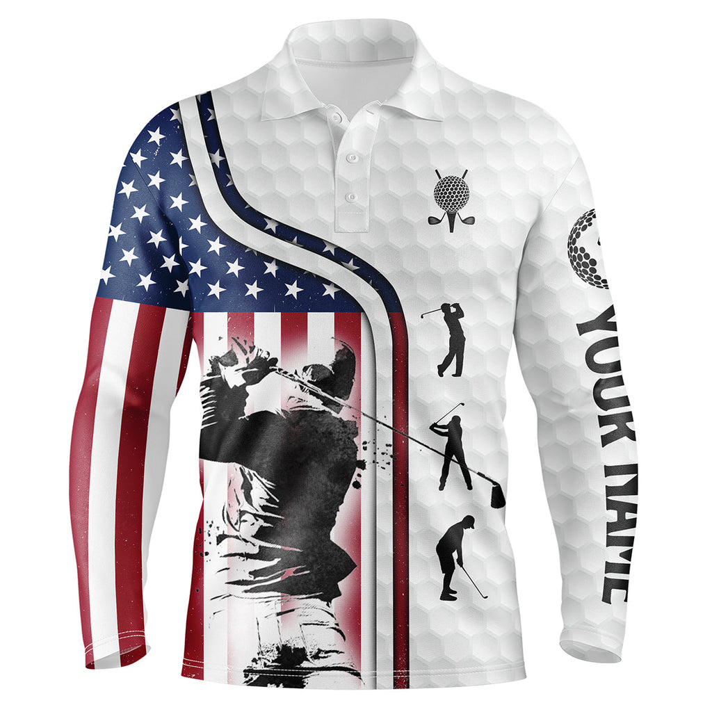 Red white blue American flag patriotic 4th of July golf shirts UPF polo custom name golf gifts for men NQS3489