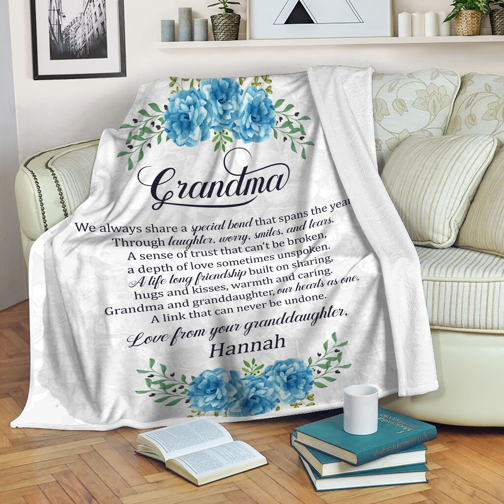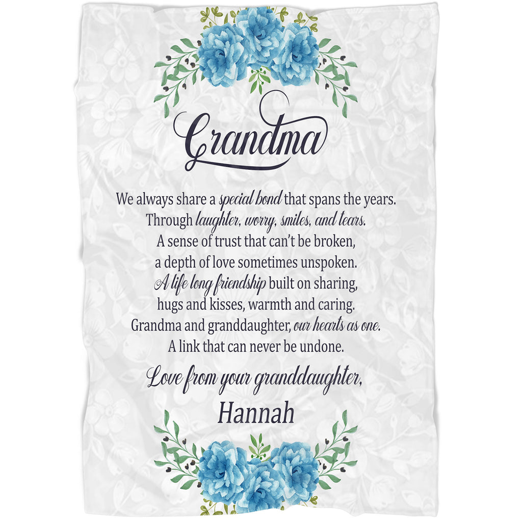 Grandma Blanket - Custom Blanket Gift for Grandma, Nana, Grandmother from Granddaughter - Blue Floral Fleece Blanket Grandma Gift for Christmas, Birthday, Thanksgiving - JB234