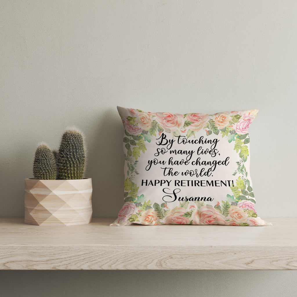 Happy Retirement Pillow| Floral Pillow Custom Retirement Gift for Women, Mom, Mother, Nurse, Teacher| JPL33