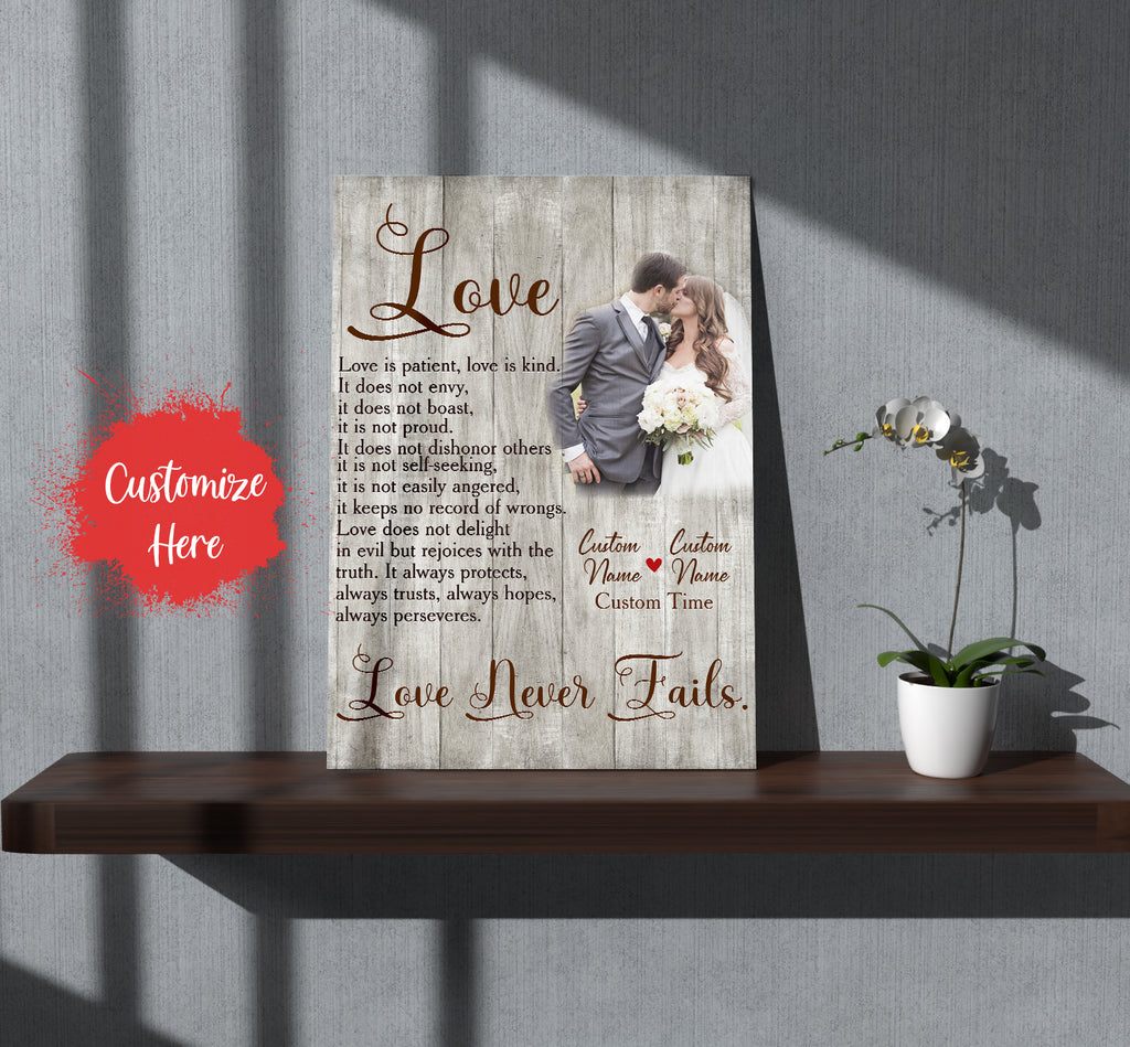 Personalized Canvas for Couple, Partner| Love Never Fails| Wedding Gift Anniversary Gift for Husband Wife| Gift for Her Him on Valentine's Day Christmas Birthday Anniversary Day M06 Myfihu JC586