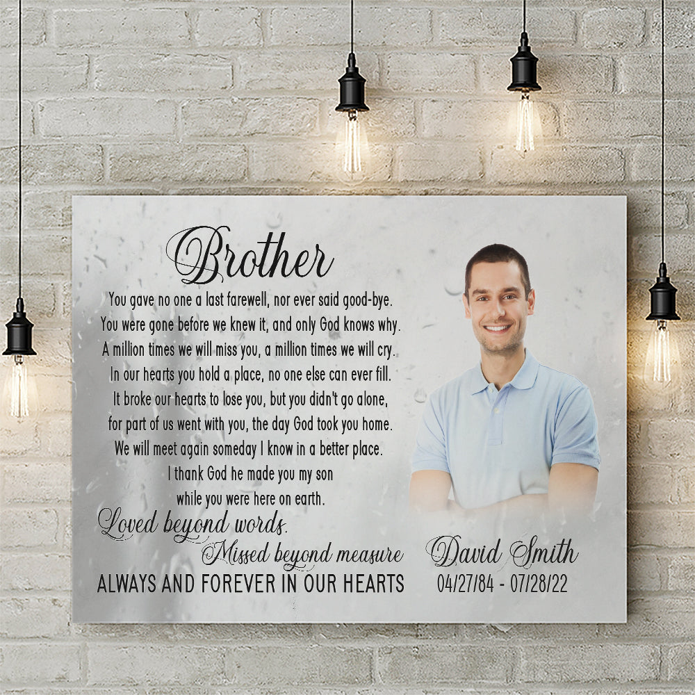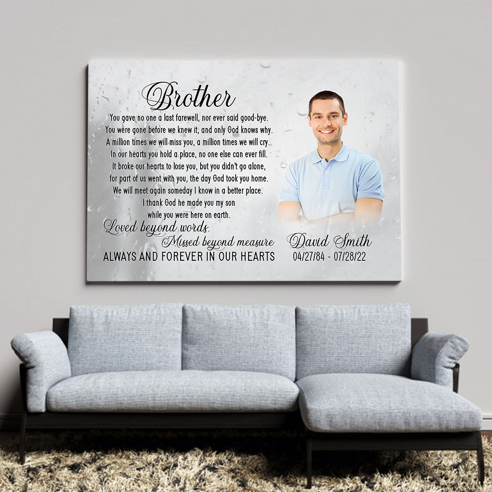 Brother remembrance canvas personalized - Brother in heaven memorial picture frame, Loss of brother CNT19