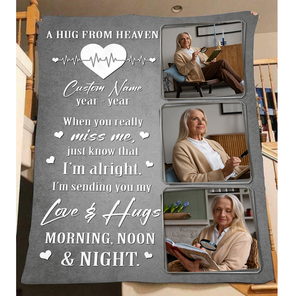 Personalized Memorial Blanket Gifts For Loss Loved One, A Hug From Heaven Remembrance Sympathy Blanket MM15