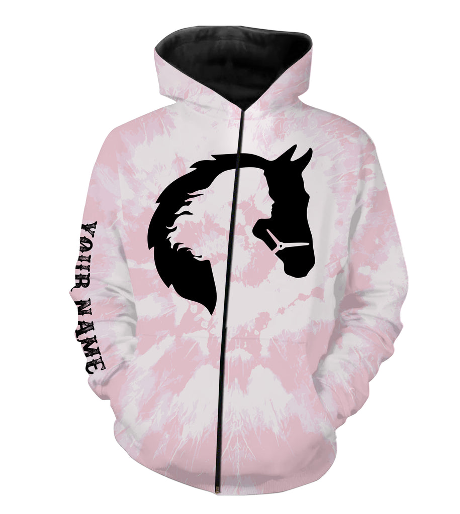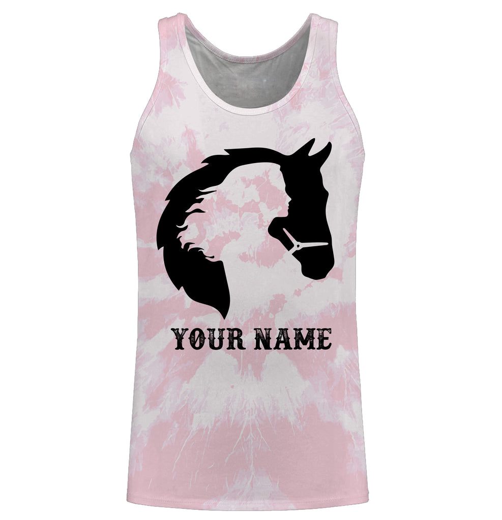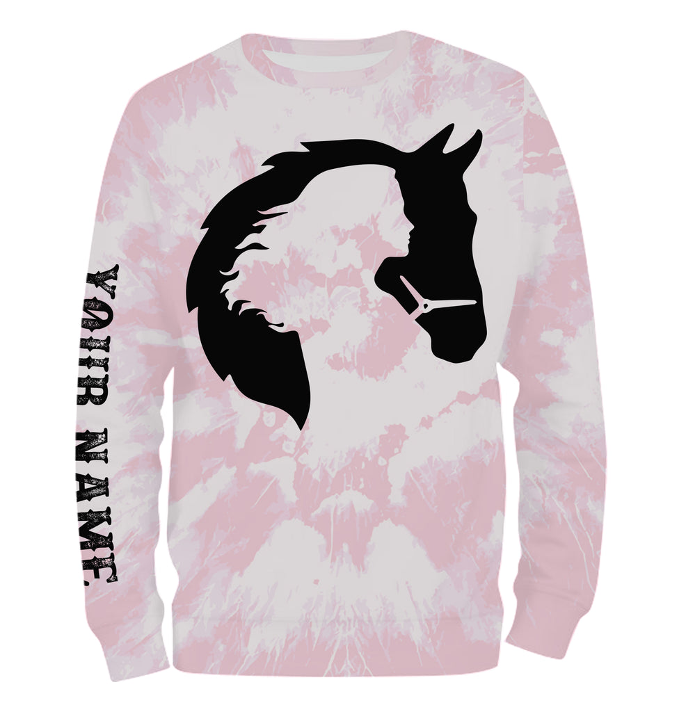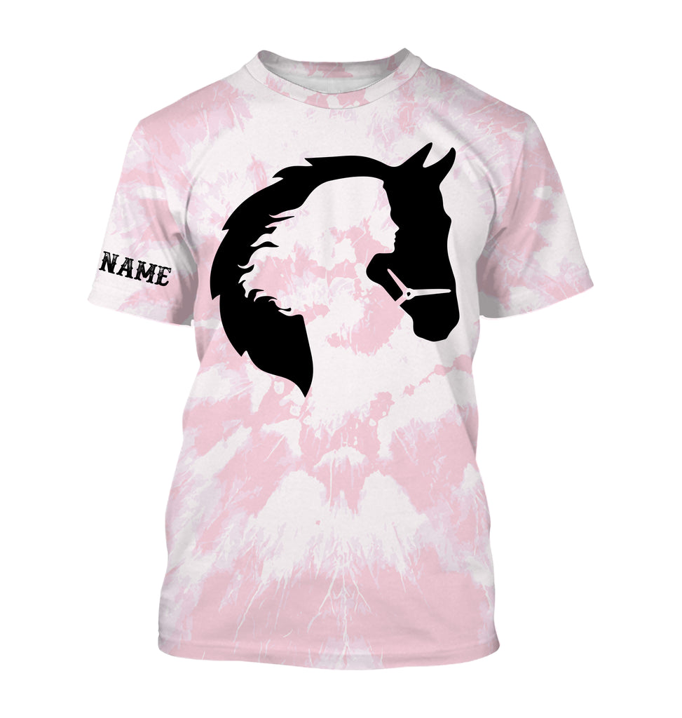 Girl riding horse pink tie dye Custom Name 3D All Over Printed Shirts Personalized horse shirt NQS3096