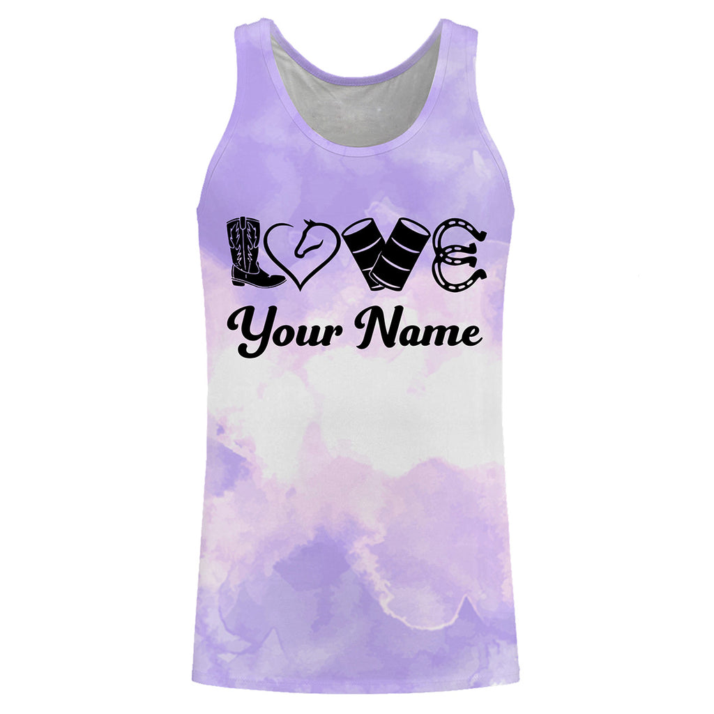 Love Barrel Racing Rodeo shirt, Barrel Racing Gifts, Cowboy Gift Customized Name purple horse Shirt NQS3105