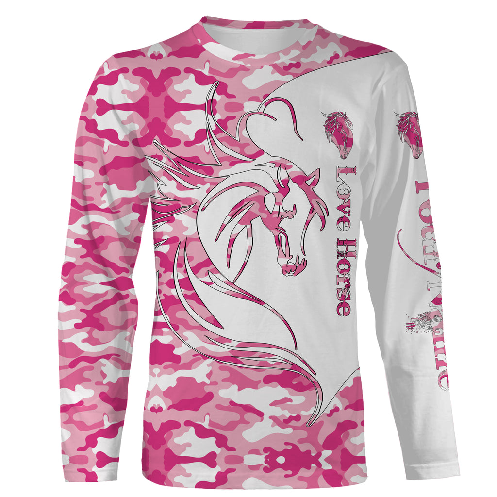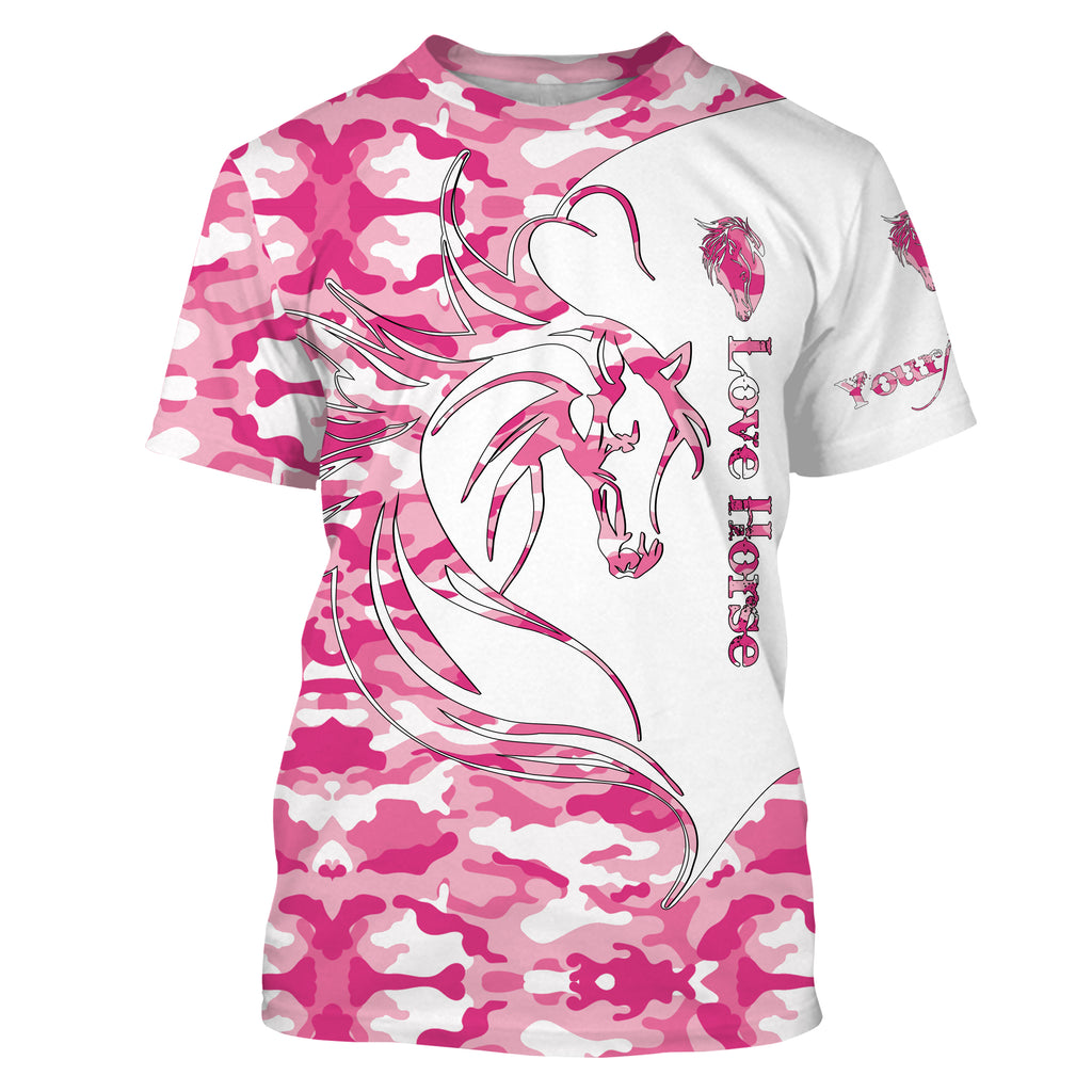 Love Horse tattoo pink camo country girl Customize Name 3D All Over Printed Shirts Personalized gift for horse lovers NQS2434