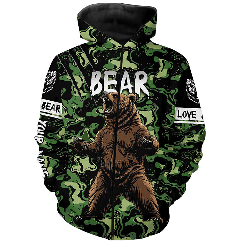 Bear hunter big game hunting green camouflage Customize Name 3D All Over Printed Shirts NQS4008