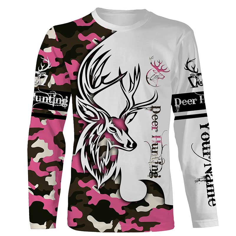 Country girl Deer hunting tattoos pink camo custom name all over print hunting Shirts - Hunting gifts NQS4041
