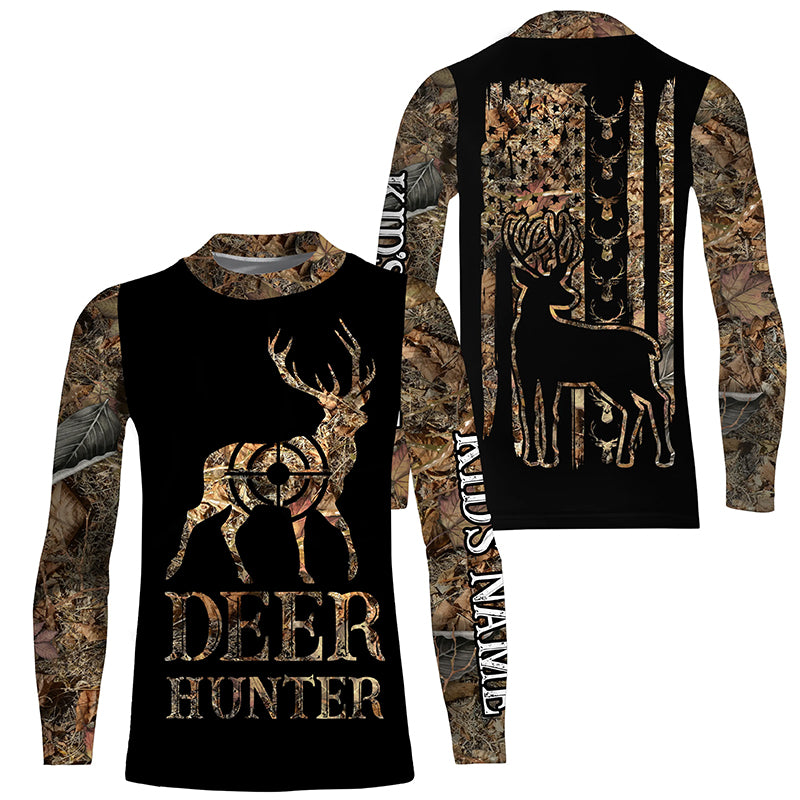 Deer Hunter Camo American flag Customize Name 3D All Over Printed Shirts, Personalized Hunting gift NQS4345