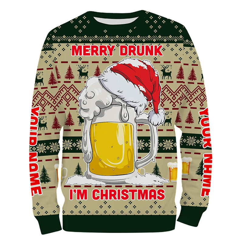 Funny Festive Drinking Gift Merry Drunk I'm Christmas Ugly Sweater Customize Name 3D Shirt TTN101