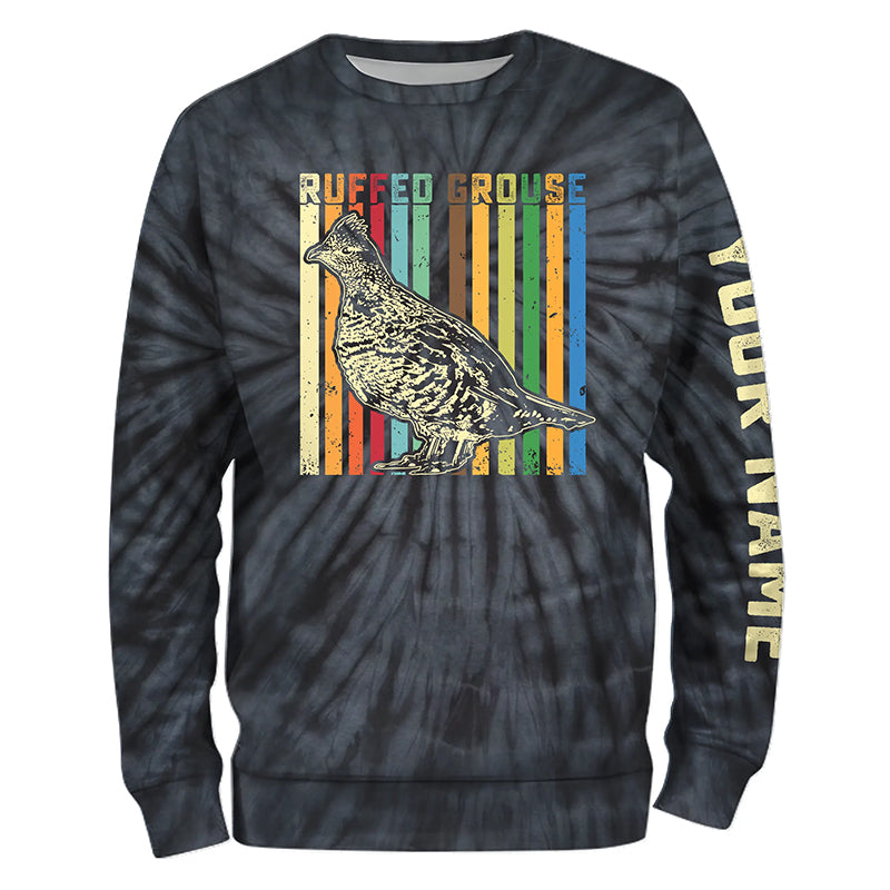 Ruffed Grouse Hunting Retro tie dye Custom Name T-shirt, Long sleeve, Hoodie for Upland game Hunters FSD3936