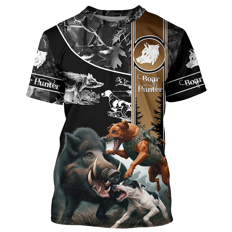 Wild Boar Hunting with Dogs Camo Custom Name Shirts, Boar hunting shirt, Gift for hunter FSD570