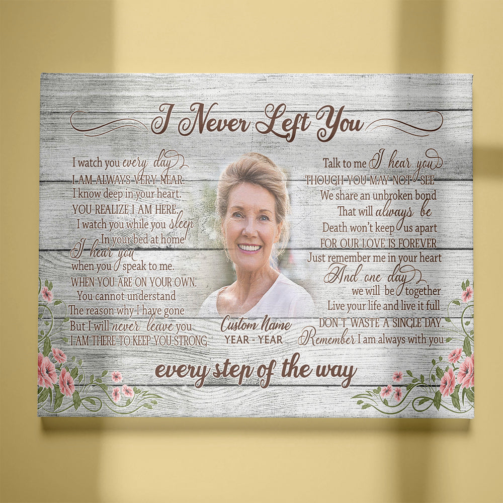 Custom remembrance canvas - I never left you, Memorial sympathy gift for loss Mom Dad Son Brother CNT10