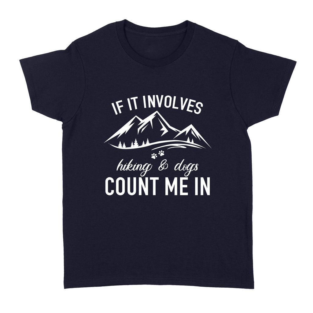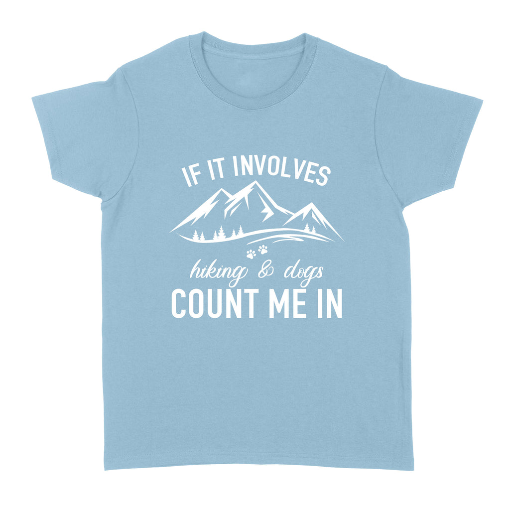 If it Involves Hiking and Dogs Count Me In T Shirt - Dog Adventure Hiking with my Dog Gift - Dog Mom| JTSD262
