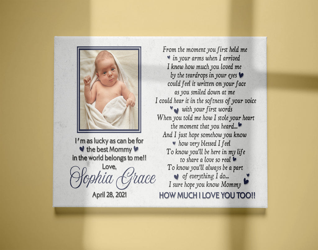 New Mom Canvas Custom Baby Photo, Best Mommy in The World, First Mother's Day Gift, 1st Time Mother| N2466