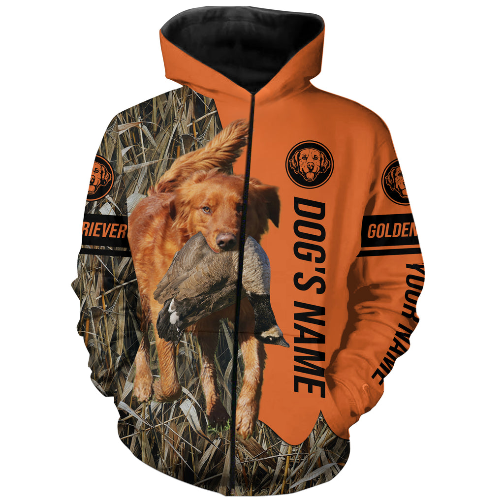 Red Golden Retriever Hunting Dog Customized Name Zip Up Hoodie Shirt for Hunters FSD4175