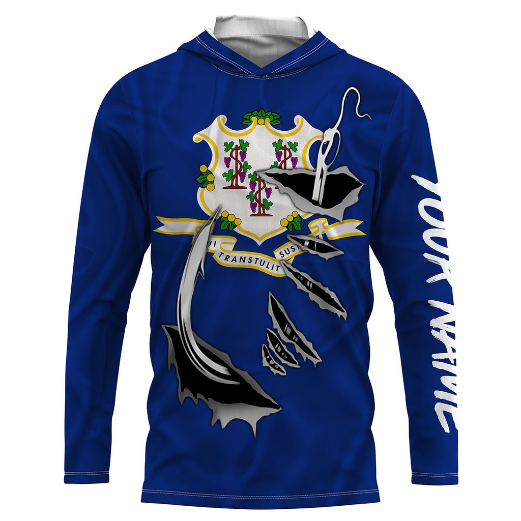 Connecticut Flag 3D Fish Hook UV Protection Custom Long Sleeve performance Fishing Shirts IPHW486