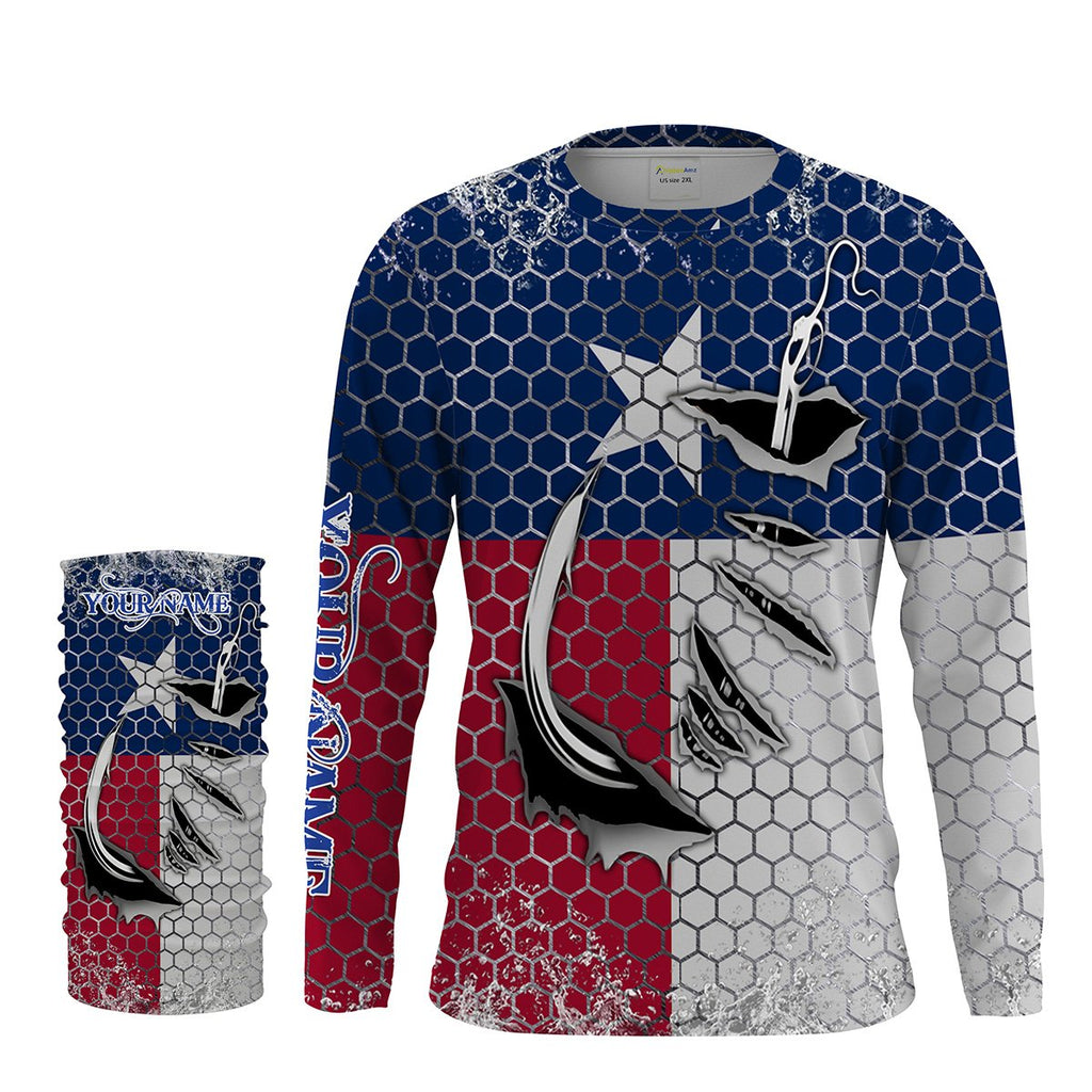 Custom Texas Flag Fishing Shirts, Texas Fish hook Long sleeve performance Fishing Shirts - IPHW1556