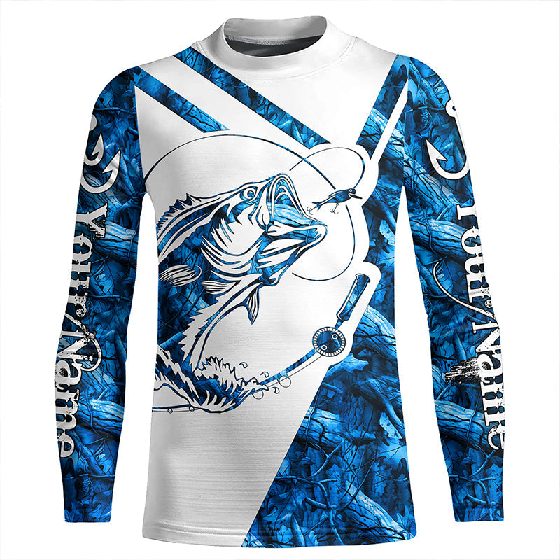Largemouth Bass Fishing blue camo UV protection Custom name long sleeves fishing shirts NQS900