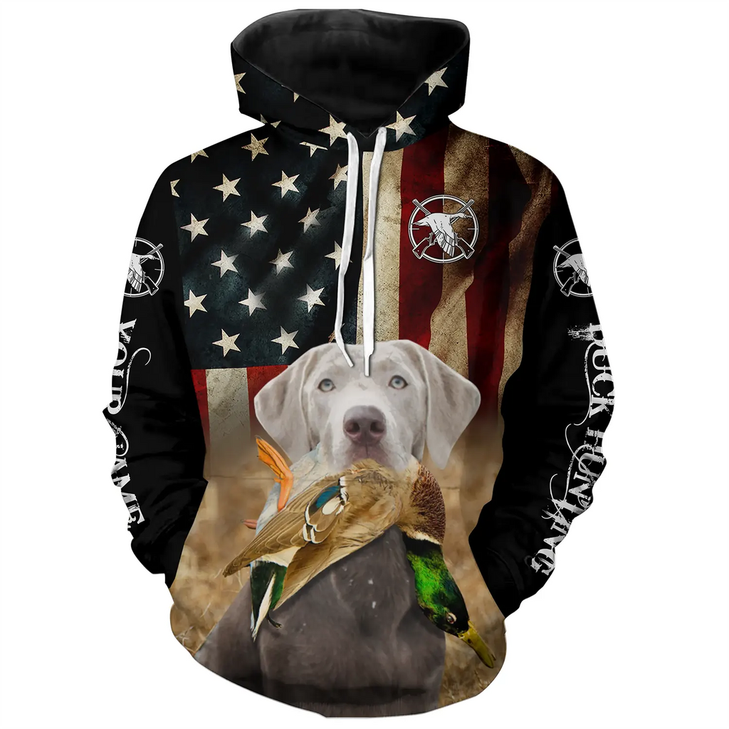 Personalized Silver Labrador Retriever Duck Hunting Dogs American flag Shirts, Hunting gifts FSD3867