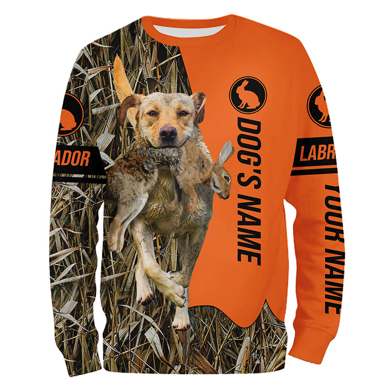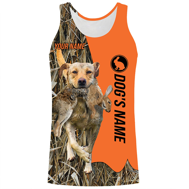 Rabbit Hunting with Dogs Yellow Labrador Retriever Customize Name Shirts, Rabbit hunting gift FSD3597