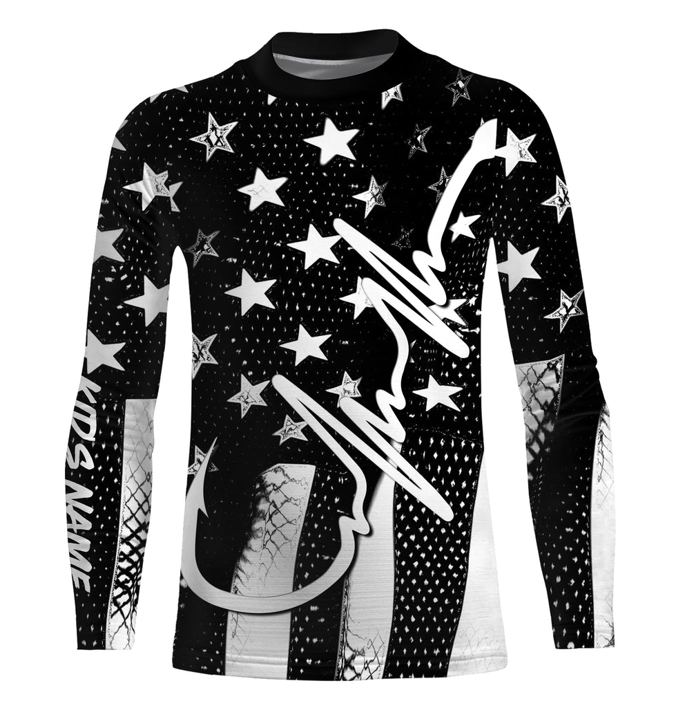 American Flag Fish Hook Heartbeat Custom Long Sleeve Fishing Shirts Personalized Patriotic Fishing Gifts TTN19