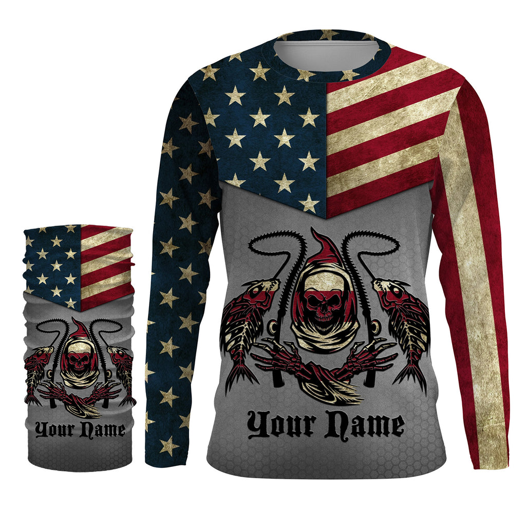 American Flag Fish reaper Custom Long sleeve Shirts UV, US flag personalized Patriotic Fishing gifts TTN11
