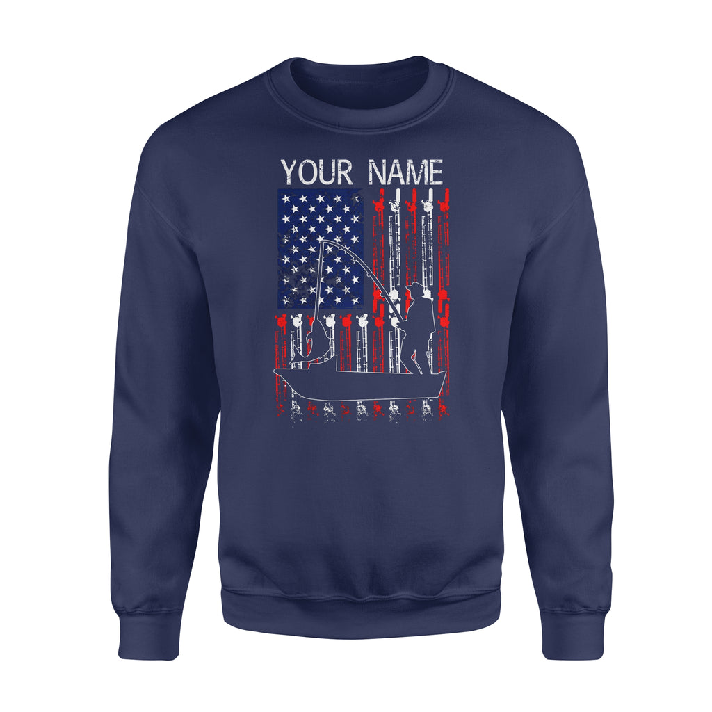 American flag 4th July fisherman kayak fishing custom name US fishing rod D05 NQS1244 - Standard Crew Neck Sweatshirt