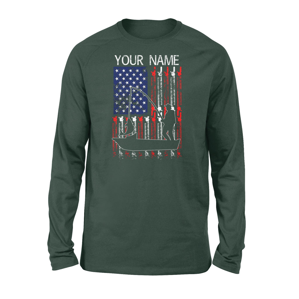 American flag 4th July fisherman kayak fishing custom name US fishing rod D05 NQS1244 - Standard Long Sleeve