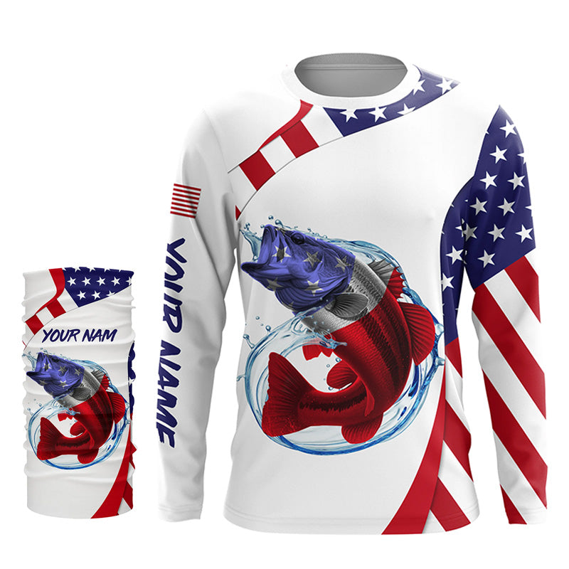 American Flag Largemouth Bass Fishing Custom patriotic fishing shirts, personalized Fishing jerseys NQS4994