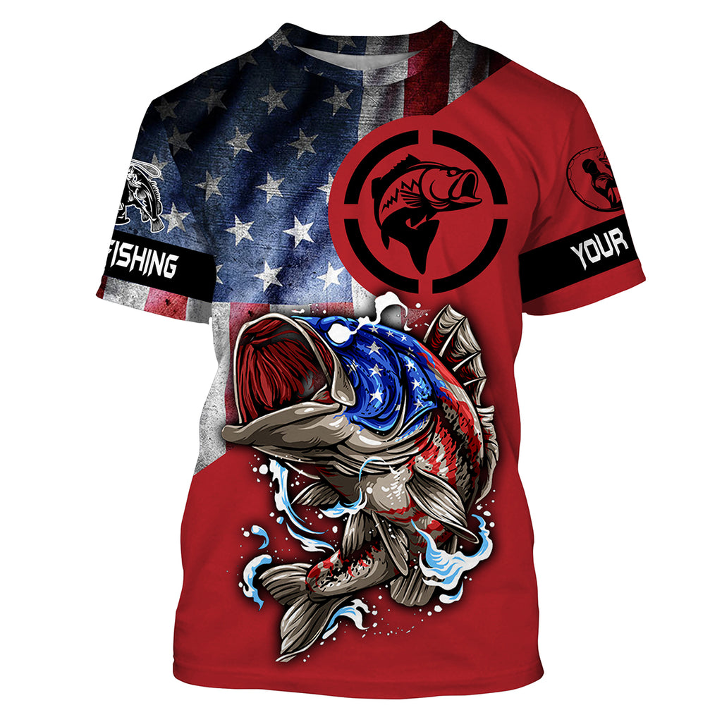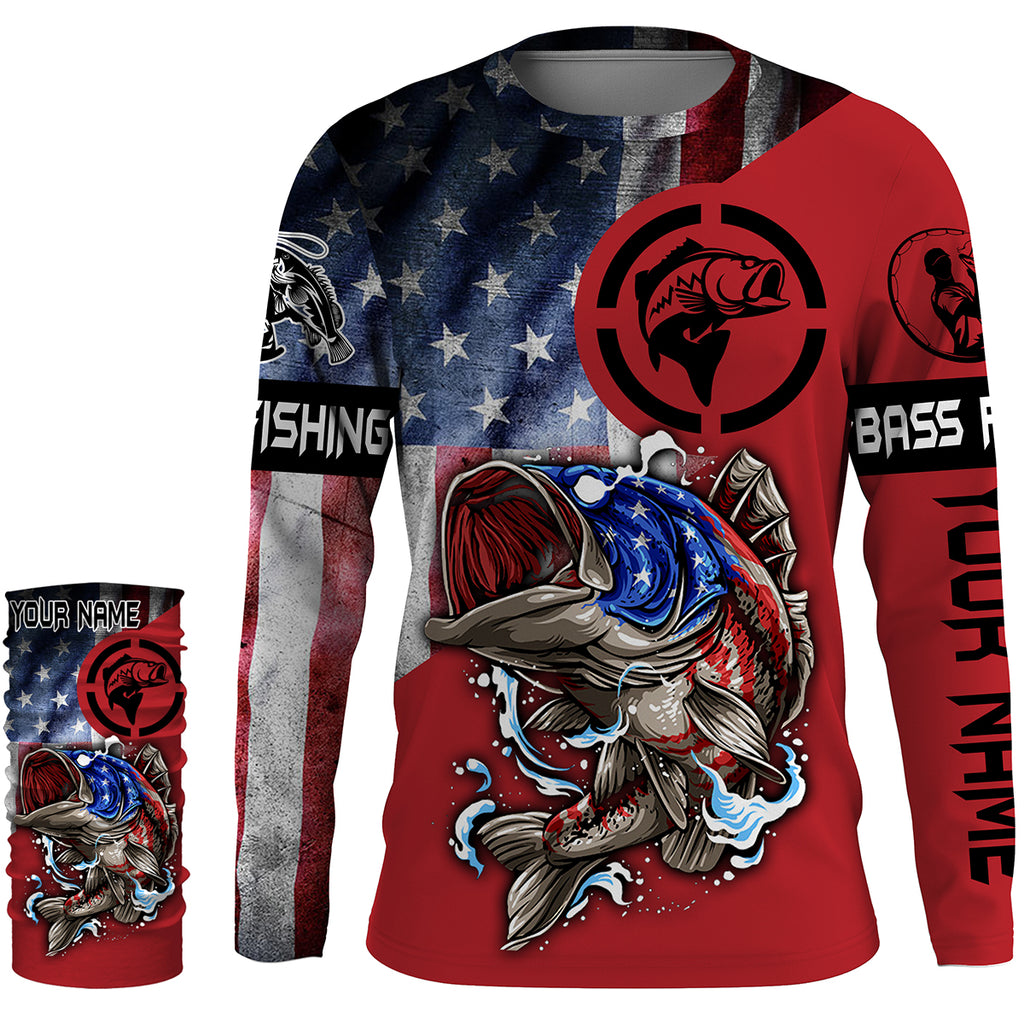 Bass Fishing Vintage American Flag 3D Custom Name UV Protection Shirts Fishing Apparel Patriotic Gift HVFS062