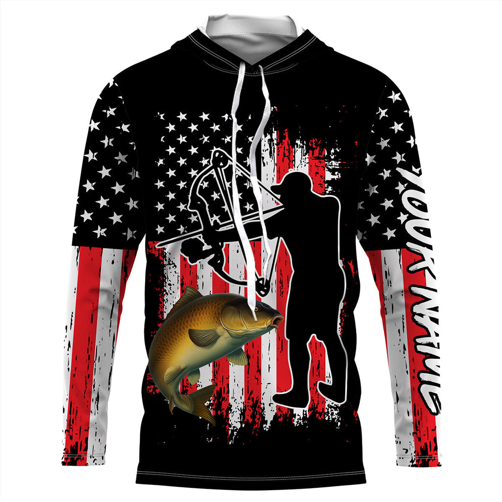 Carp hunter bow fishing American flag patriotic Custom Name fishing jersey NQS2969