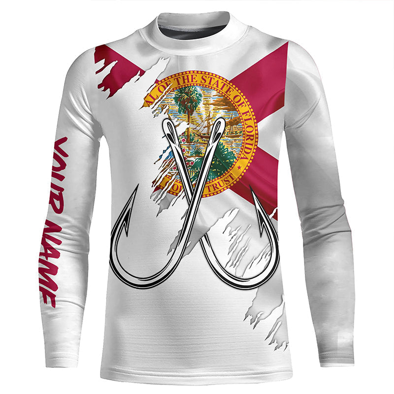 Florida flag FL Fishing Fish Hook UV protection custom long sleeves shirts Patriotic fishing apparel NQS7925