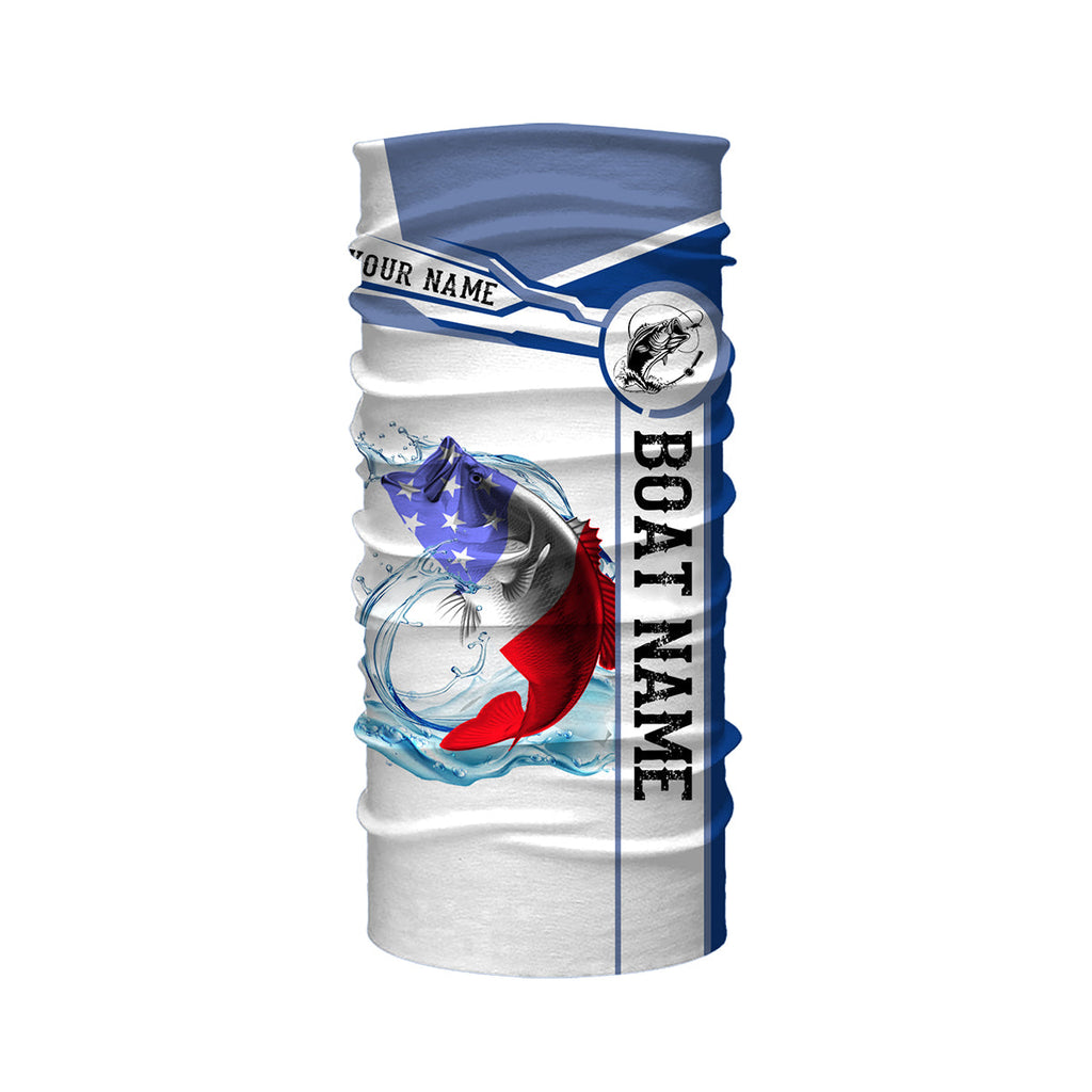 Largemouth Bass Fishing American Flag Custom name and boat name performance Long Sleeve Fishing Shirts, Patriotic Fishing gifts NQS2351