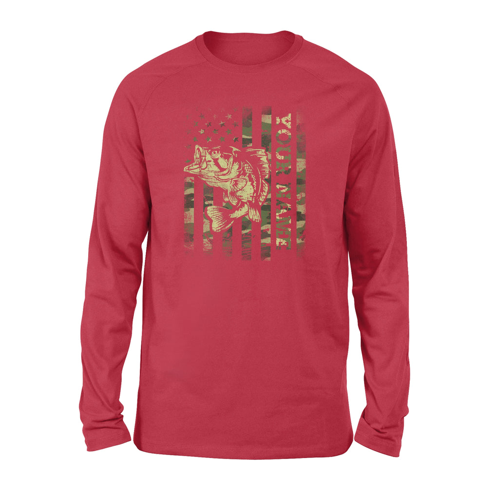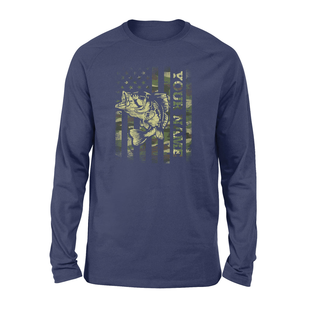 Largemouth bass fishing American flag 4th July green camo custom name fishing shirts D05 NQS1428 - Standard Long Sleeve