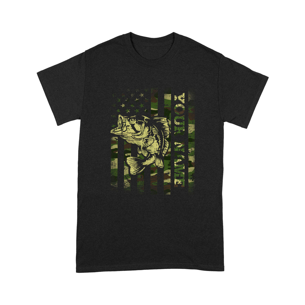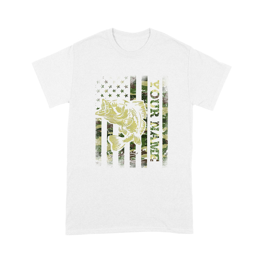 Largemouth bass fishing American flag 4th July green camo custom name fishing shirts D05 NQS1428 - Standard T-shirt