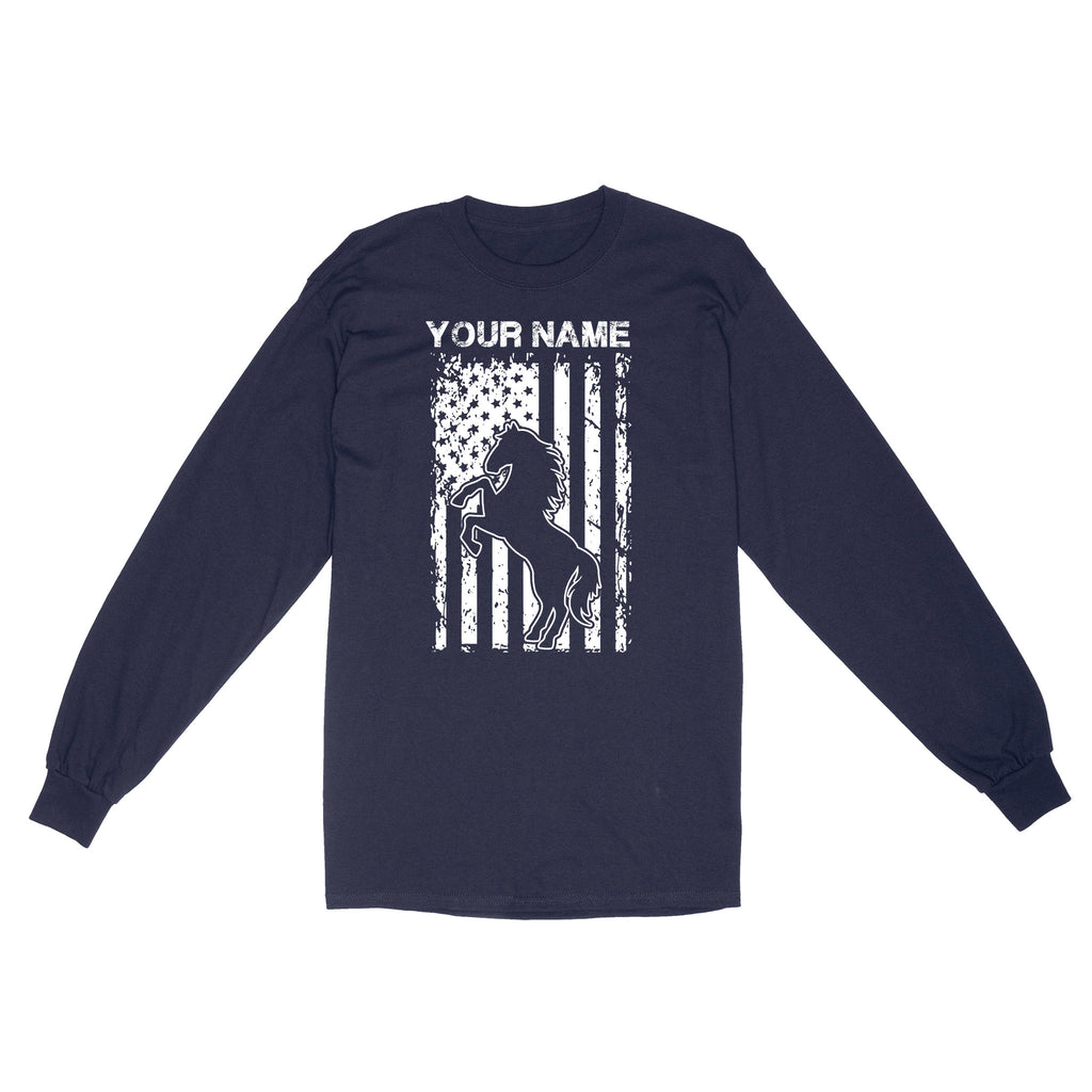 Personalized Horse American Flag, USA, Patriotic Cowgirl Equestrian shirts D02 NQS2773  - Standard Long Sleeve