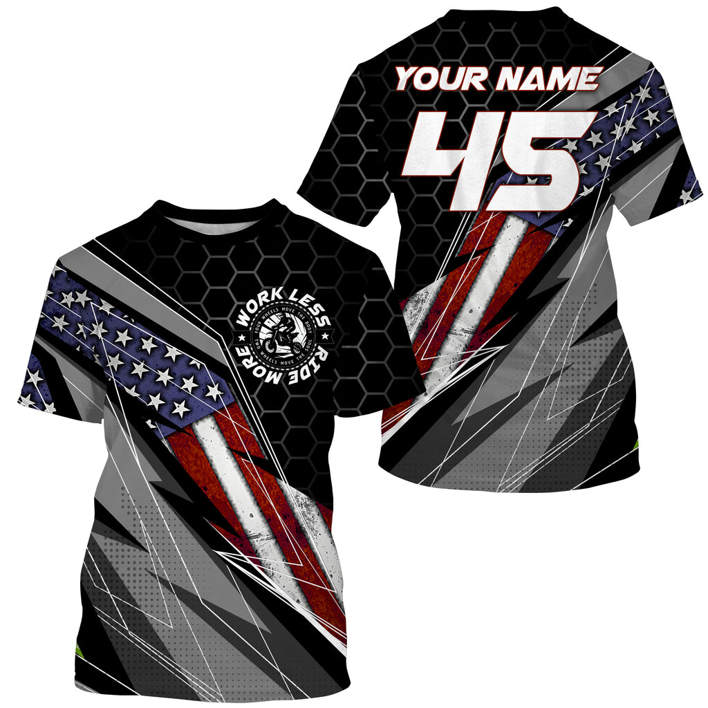 Personalized Racing Jersey UPF30+ Patriotic Work Less Ride More Dirt Bike Rider Motorcycle Racewear| NMS596