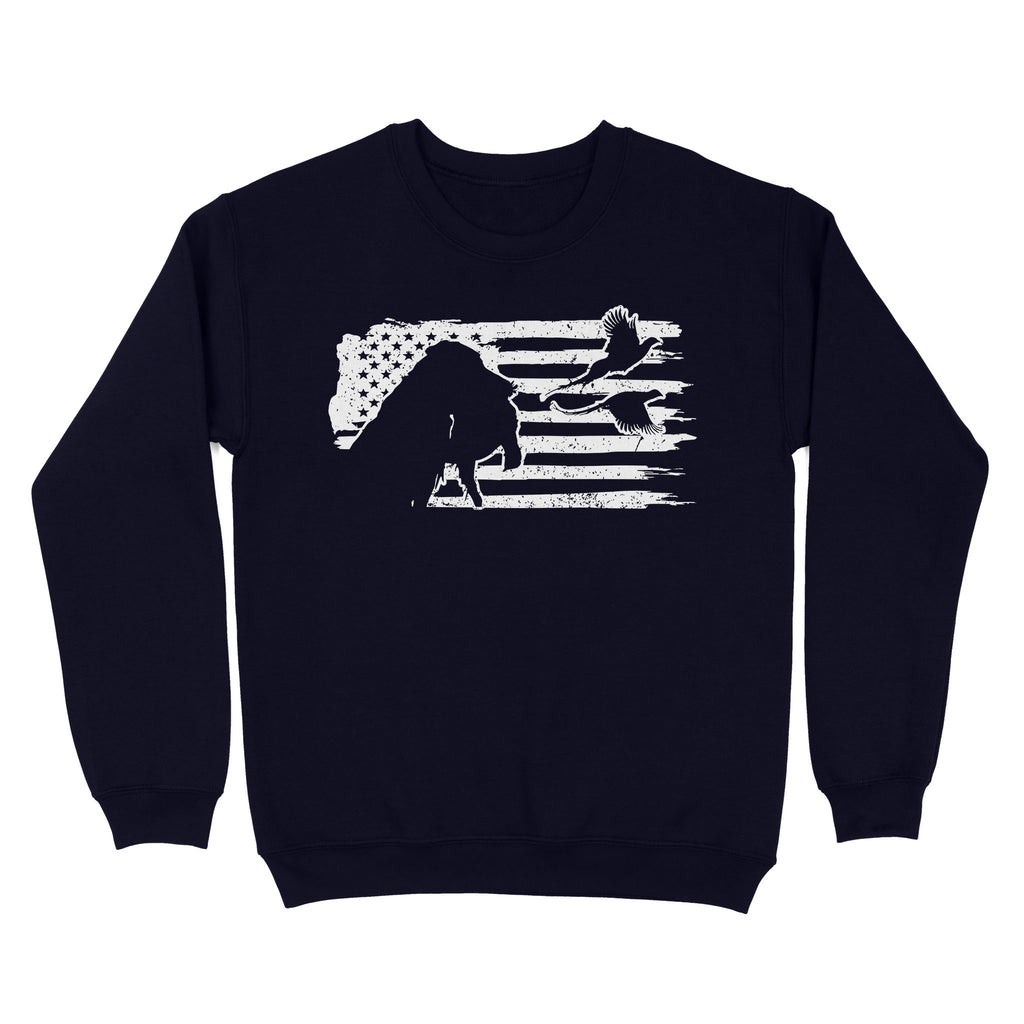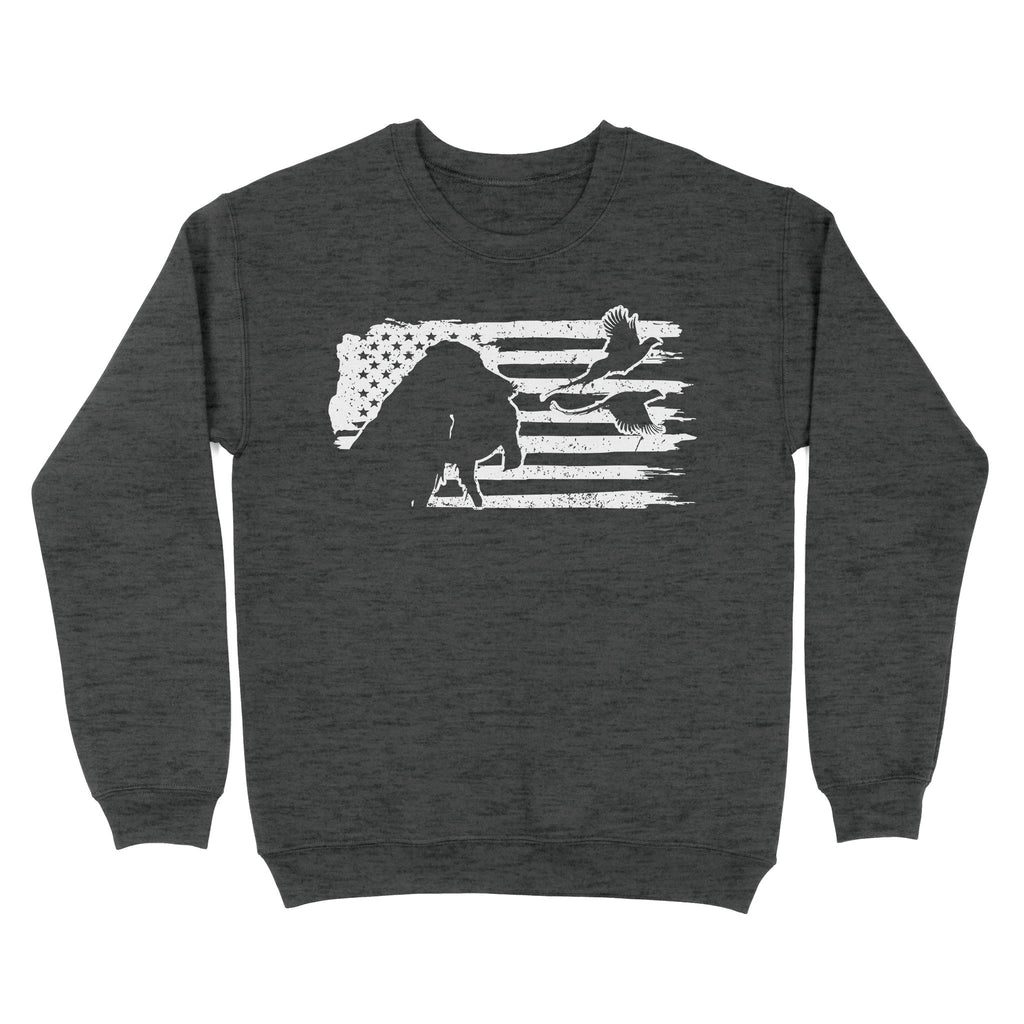 Pheasant hunting with dog American flag patriotic hunting, dog hunting pheasant shirt D01 NQS2582 Standard Crew Neck Sweatshirt