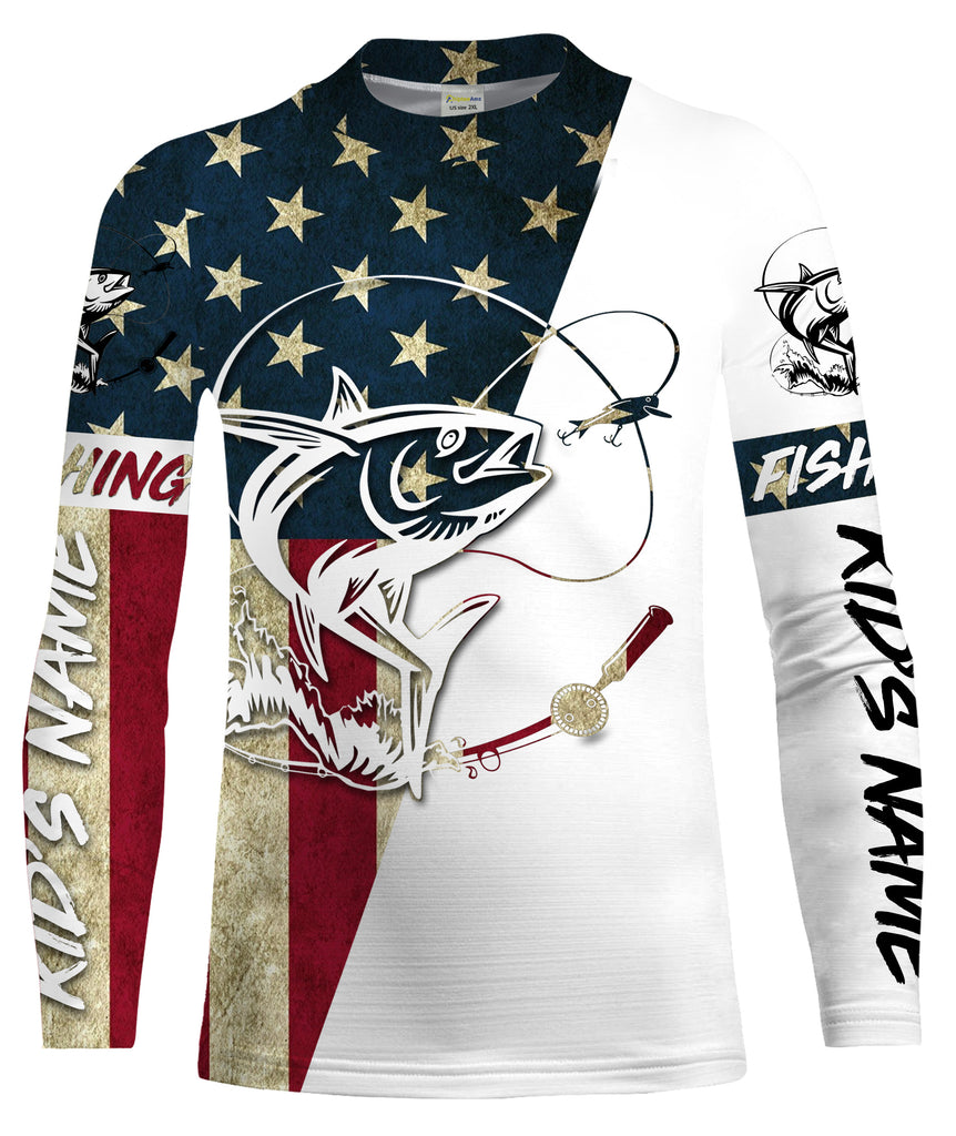 Tuna Fishing American Flag Custom UV Long Sleeve Fishing Shirts, personalized Patriotic Fishing gifts - IPHW1611